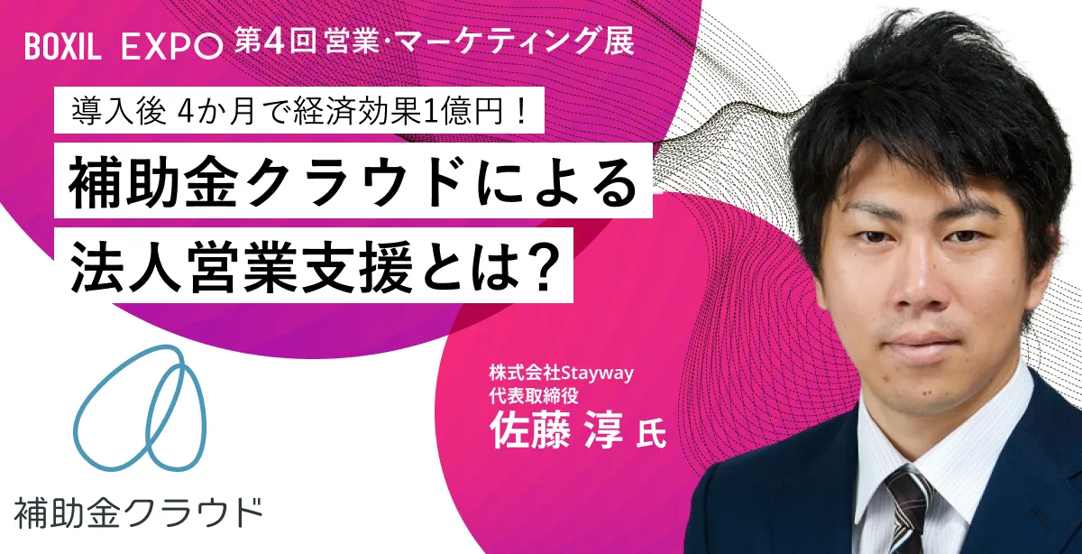 オンライン展示会「BOXIL EXPO 第4回 営業・マーケティング展」へ、法人営業のためのクラウド型補助金・助成金獲得支援サービス「補助金クラウド」の出展決定!