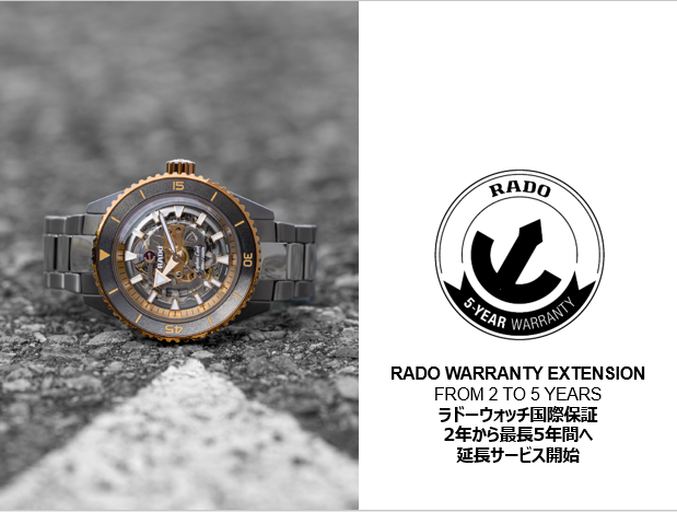 スイス時計ブランド、ラドーは、この度2023年11月より正規販売店でラドーウォッチご購入のお客様へ、これまでの2年間の国際保証に加えてさらに3年間の延長保証サービスを提供し、合計で最長5年間保証をご提供できる運びとなりました。