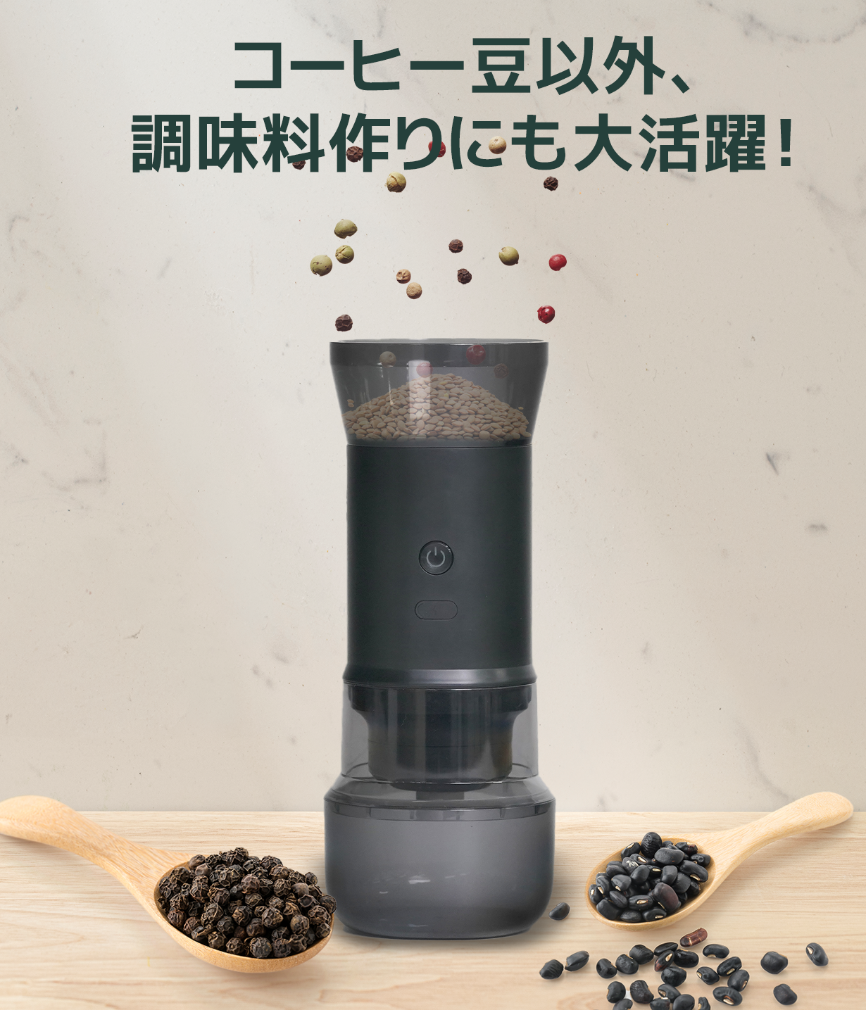 コーヒー豆以外にも、からし、雑穀米など調味料・原材料を自分好みの粗さに挽くことが可能です!