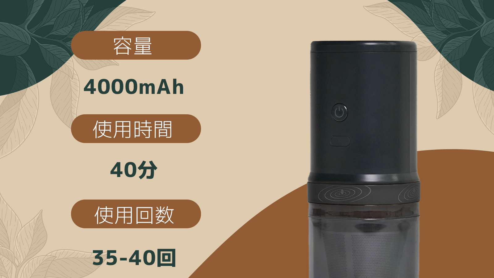 一回のフル充電で、最大40回分の豆を挽けます!