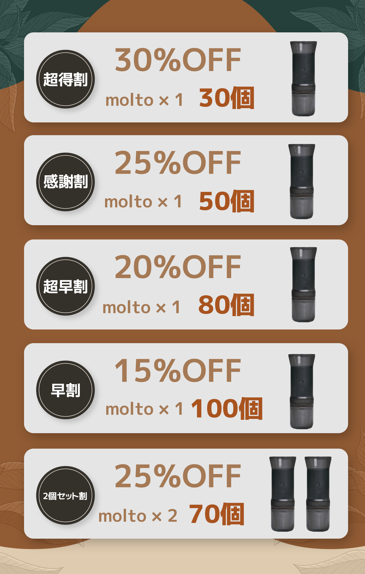 株式会社リードエッジコンサルティング(本社:東京都新宿区 代表取締役:庄司貴之)は2023年3月23日よりMakuakeにてポータブルコーヒーメーカー「molto」の販売を開始いたしました。本プロジェクトは4月29日までMakuake上で展開し、その後一般販売及び法人向け卸サービスも展開予定です。
