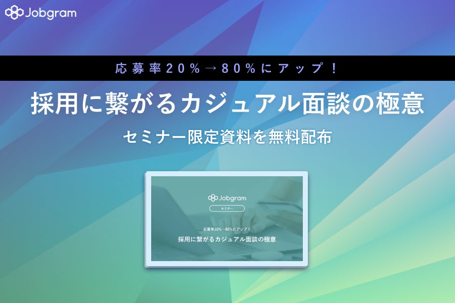【Jobgram】『応募率20%→80%にアップ!採用に繋がるカジュアル面談の極意』のセミナー限定資料を無料配布