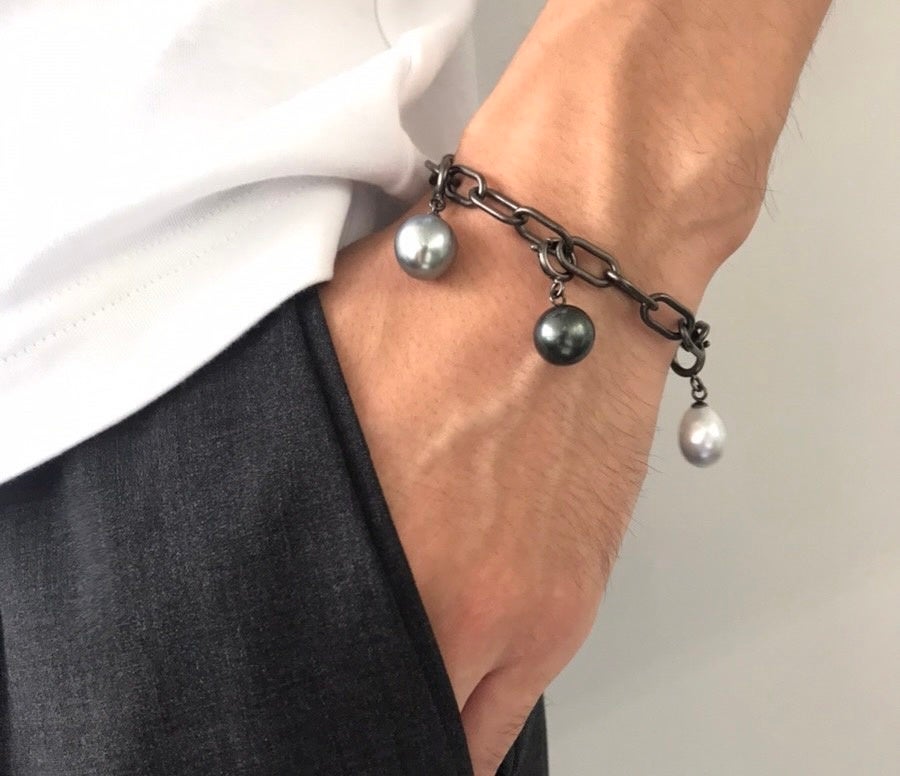 今、お洒落なメンズが大注目しているパールジュエリー。マルゴリングをはじめ、チャームシリーズなどMARLENAの人気商品をブラックコーティングし、凛とした力強さとエッジの効いたスタイルに。