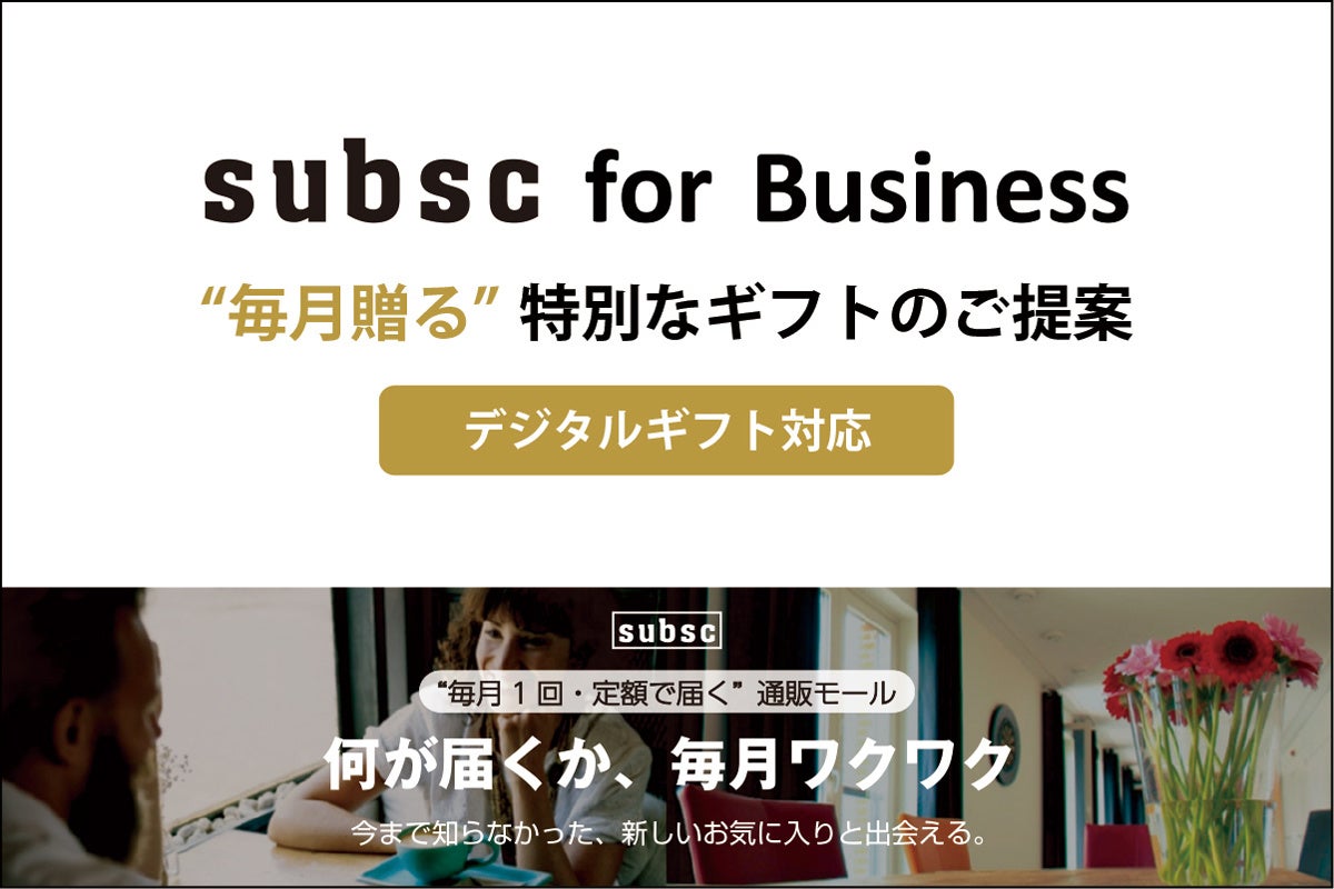 “毎月贈る” 記憶に残る、特別なギフトに「subsc for Business」をご活用ください。