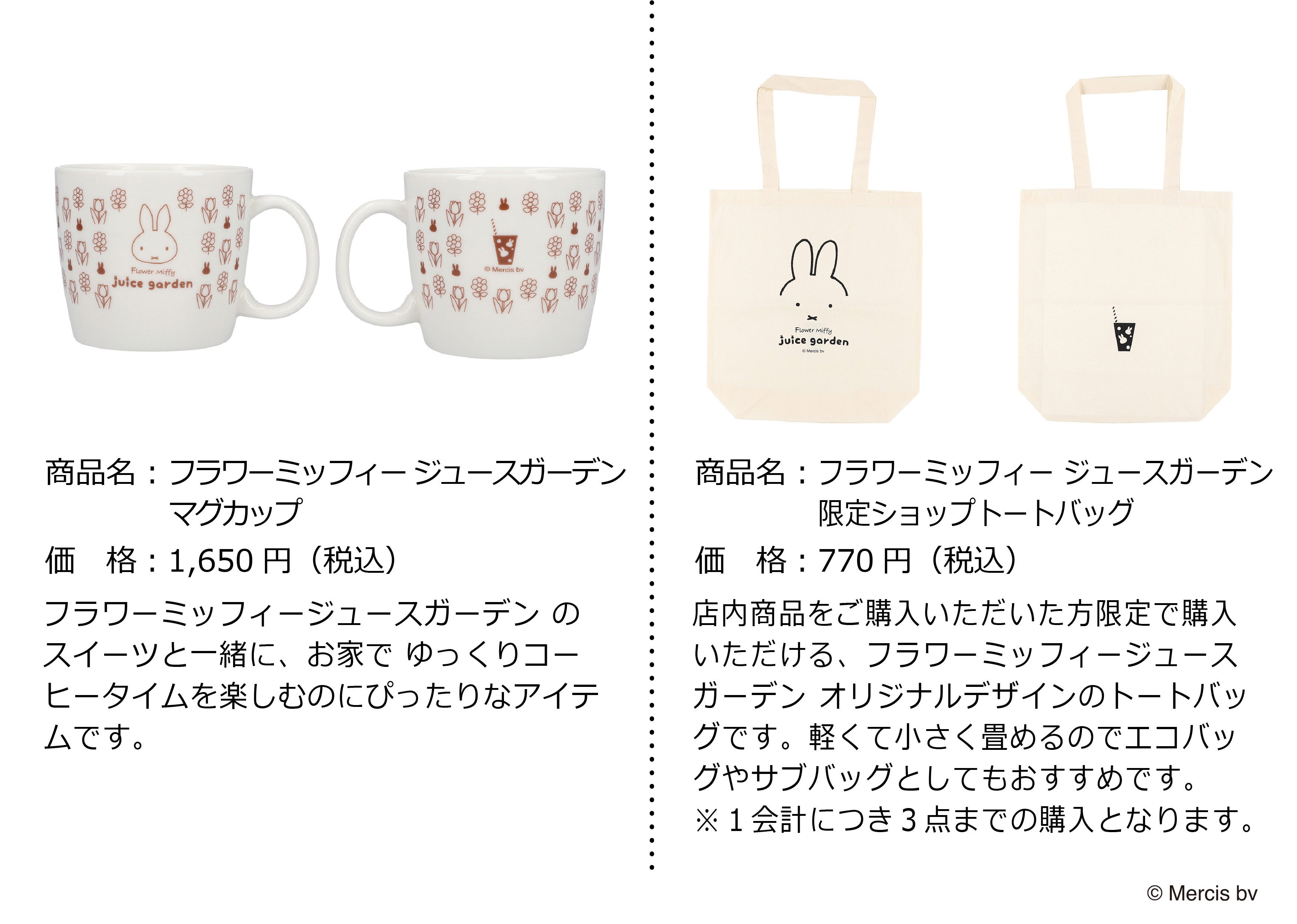 ●併設「フラワーミッフィー ジュースガーデン」 オリジナルグッズ 一例 ※画像はイメージです。