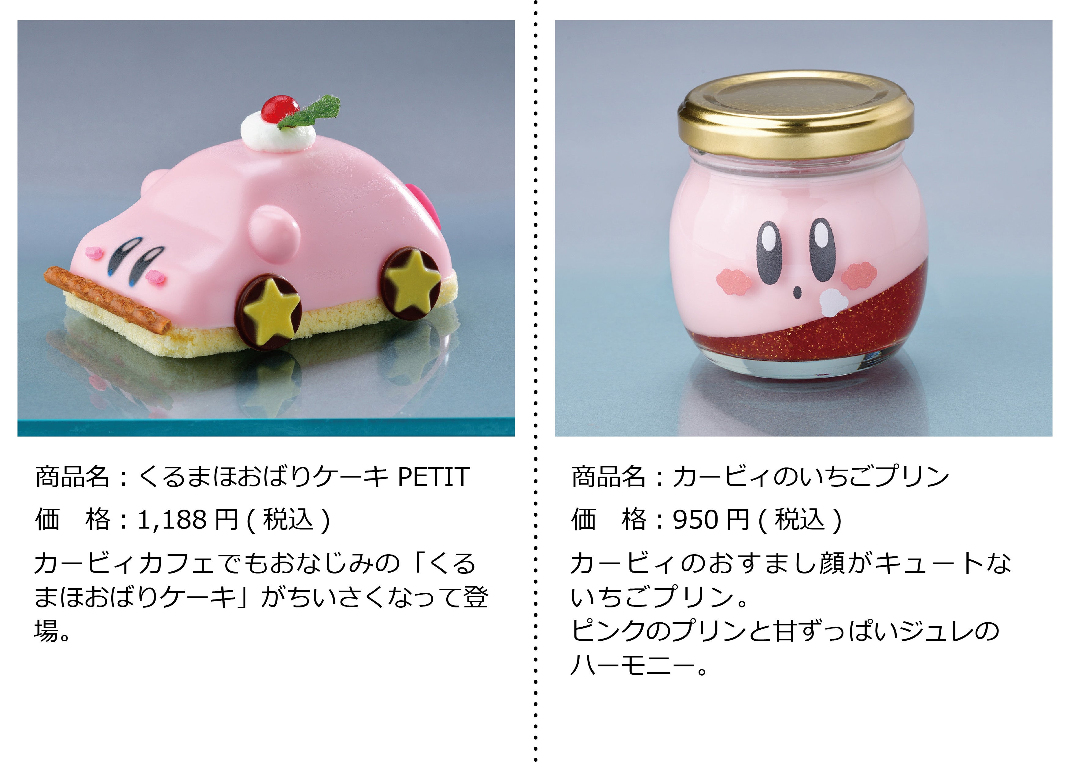 カービィカフェで人気の「くるまほおばりケーキ」のPETITサイズをはじめ、全9種のケーキメニューが登場します。