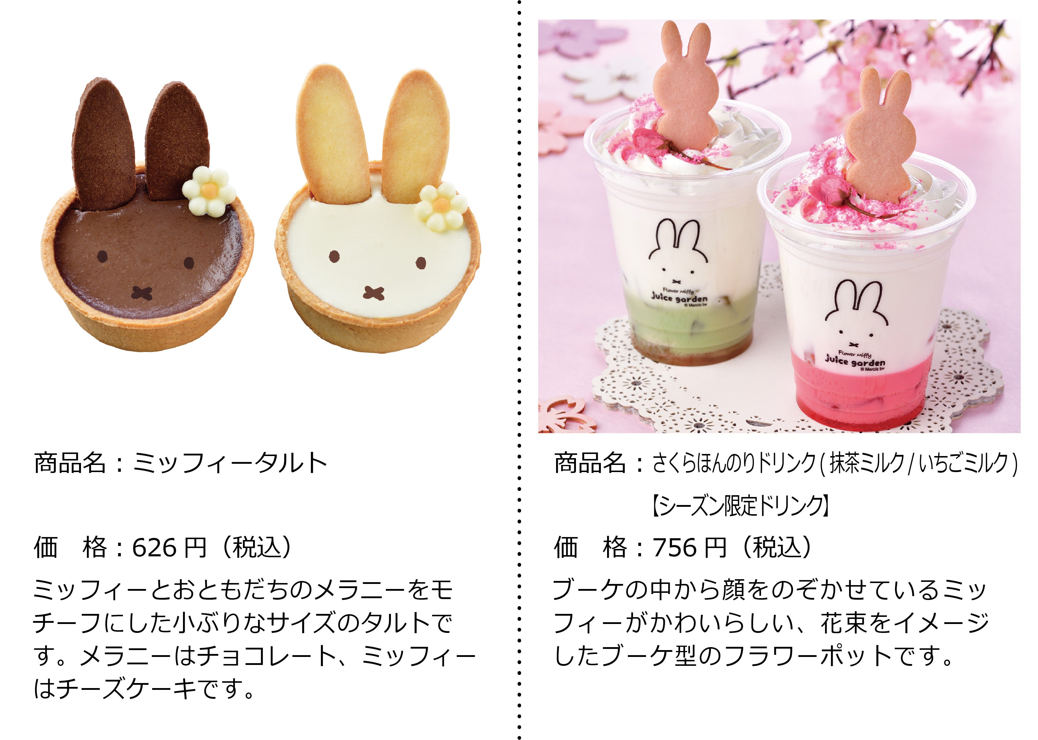 ●併設「フラワーミッフィー ジュースガーデン」おすすめメニュー 一例 ※画像はイメージです。