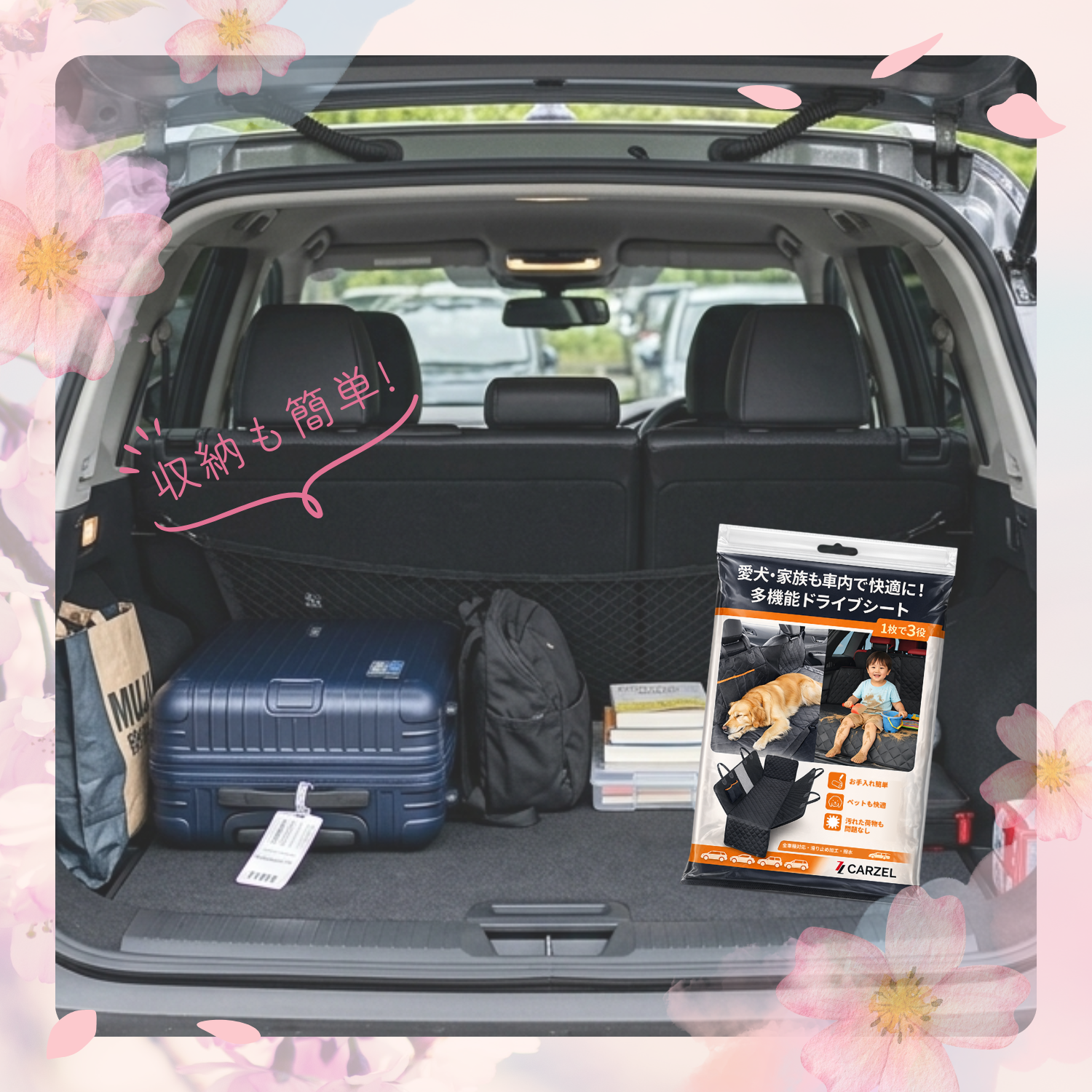 花粉や泥汚れの車内対策に。ペット・子ども・荷物で使える「ドライブシート」を日本ブランド「CARZEL」から発売
