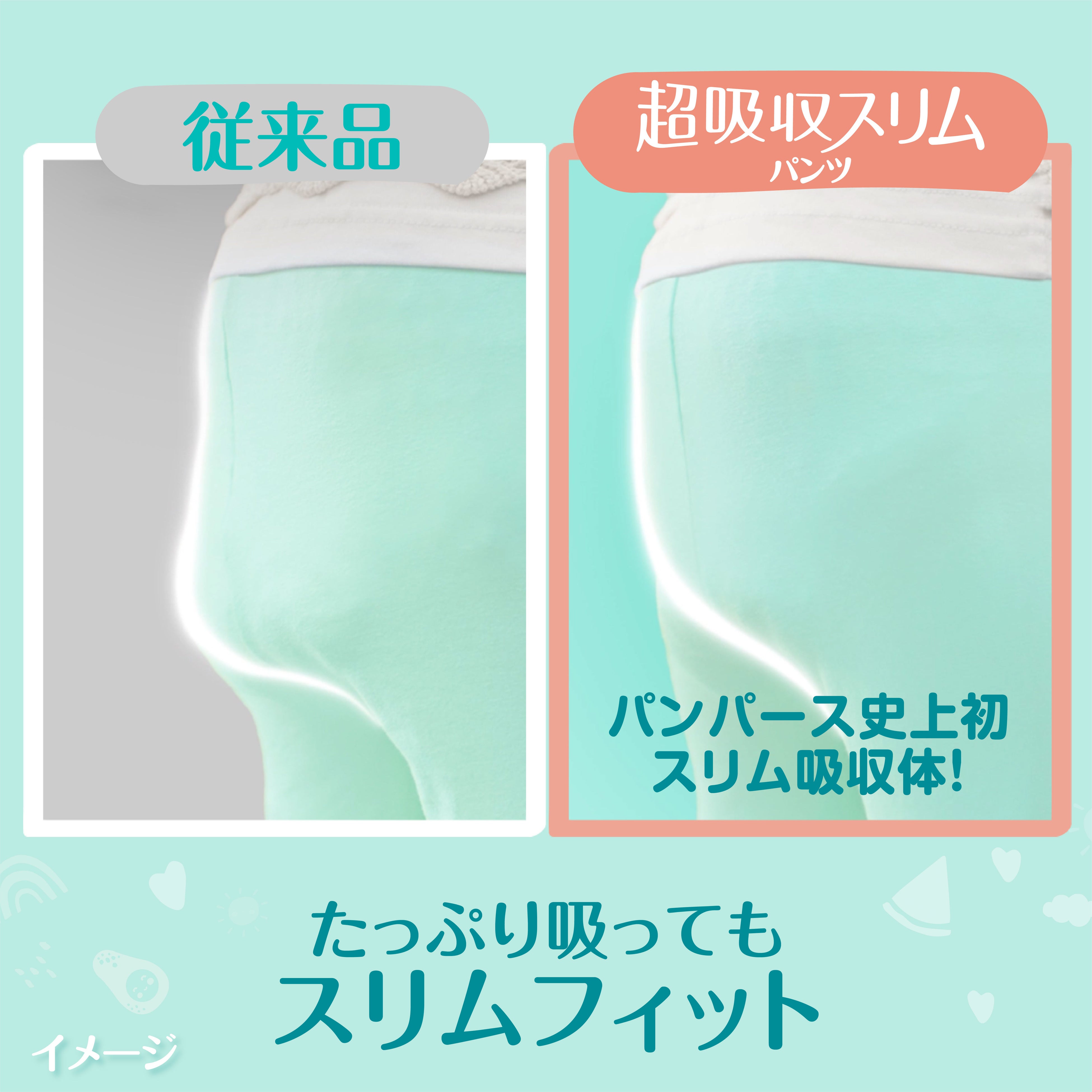 おむつ革命!「薄さ」と「超吸収」を両立!おしっこをたっぷり吸ってもスリムフィット。もこもこしにくく動きやすい!「パンパ―スの肌へのいちばん* 超吸収スリムパンツ」