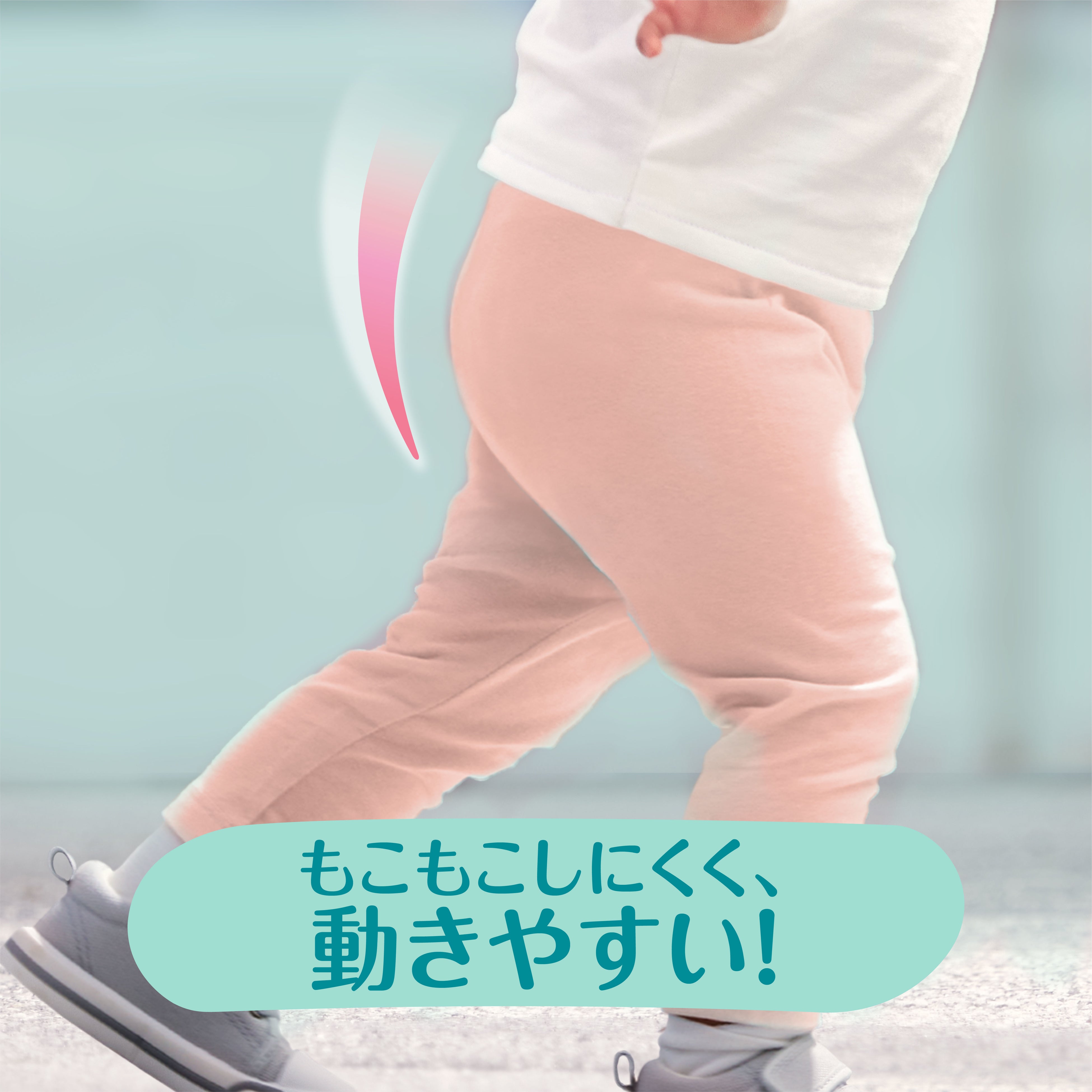 おむつ選びにおいて、ママ・パパは、「モレにくさ」や「吸収力」、「通気性」に加え、赤ちゃんにとっての「快適さ」も求めていることがわかりました。そこでパンパースは、おしっこを吸収した後のおむつがもこもこしてしまうことで、赤ちゃんが歩きにくくなっている状態に着目しました。