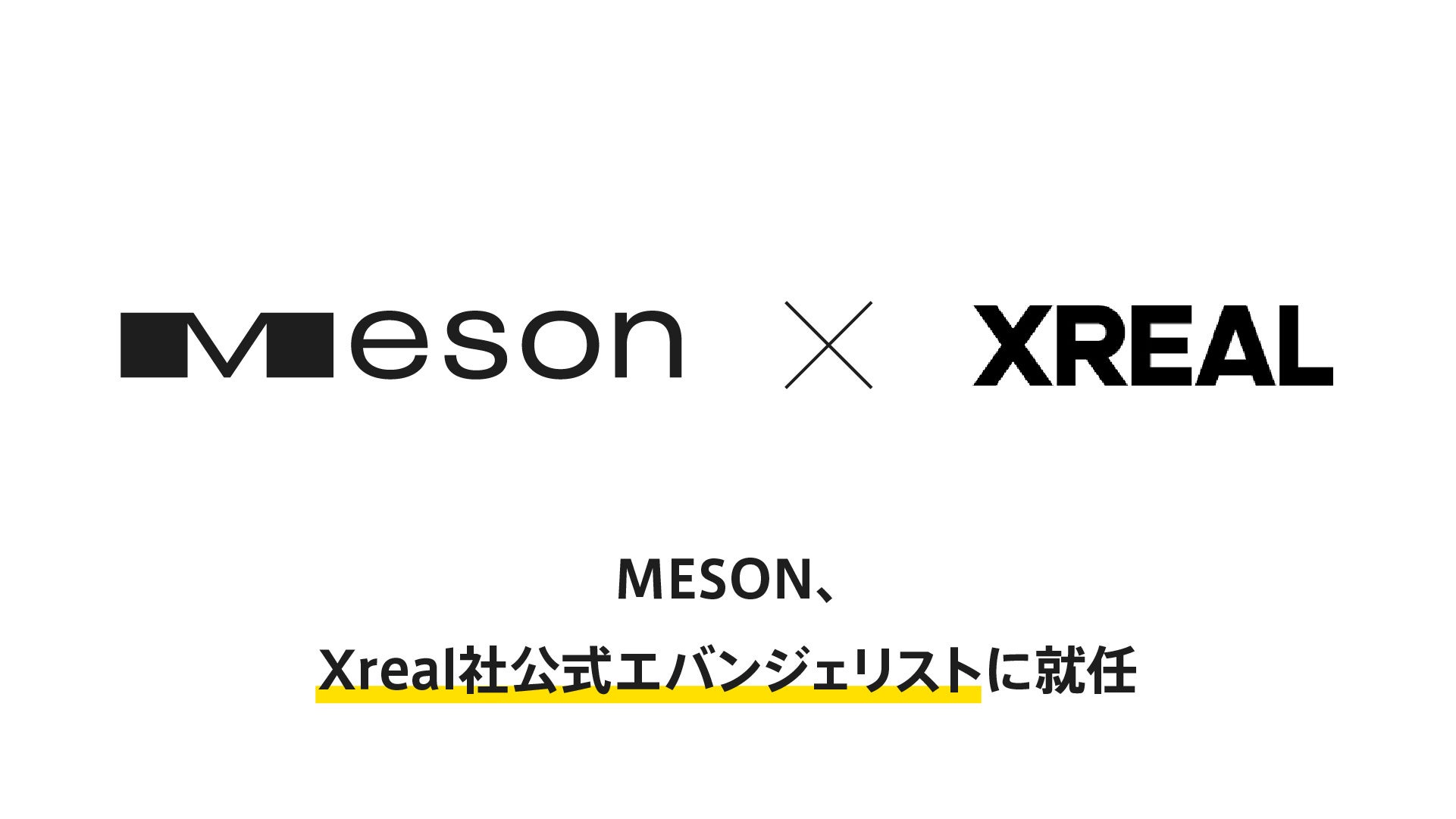 株式会社MESON(東京都渋谷区、代表取締役社長:小林佑樹、読み:メザン、以下MESON)は2024年6月より、空間コンピューティングデバイス「XREAL」シリーズを開発する日本Xreal株式会社(東京都港区、代表取締役社長:徐 馳、以下日本XREAL)の公式エバンジェリストに就任したことをお知らせいたします。これにより、MESONは「XREAL Air」シリーズおよび空間コンピューティング技術のさらなる普及を推進してまいります。