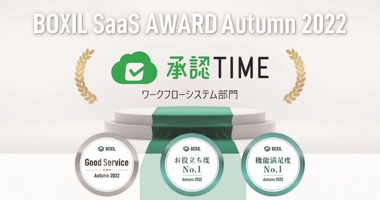 「承認TIME」が「BOXIL SaaS AWARD Autumn 2022」ワークフローシステム部門で「Good Service」「お役立ち度No.1」「機能満足度No.1」を獲得