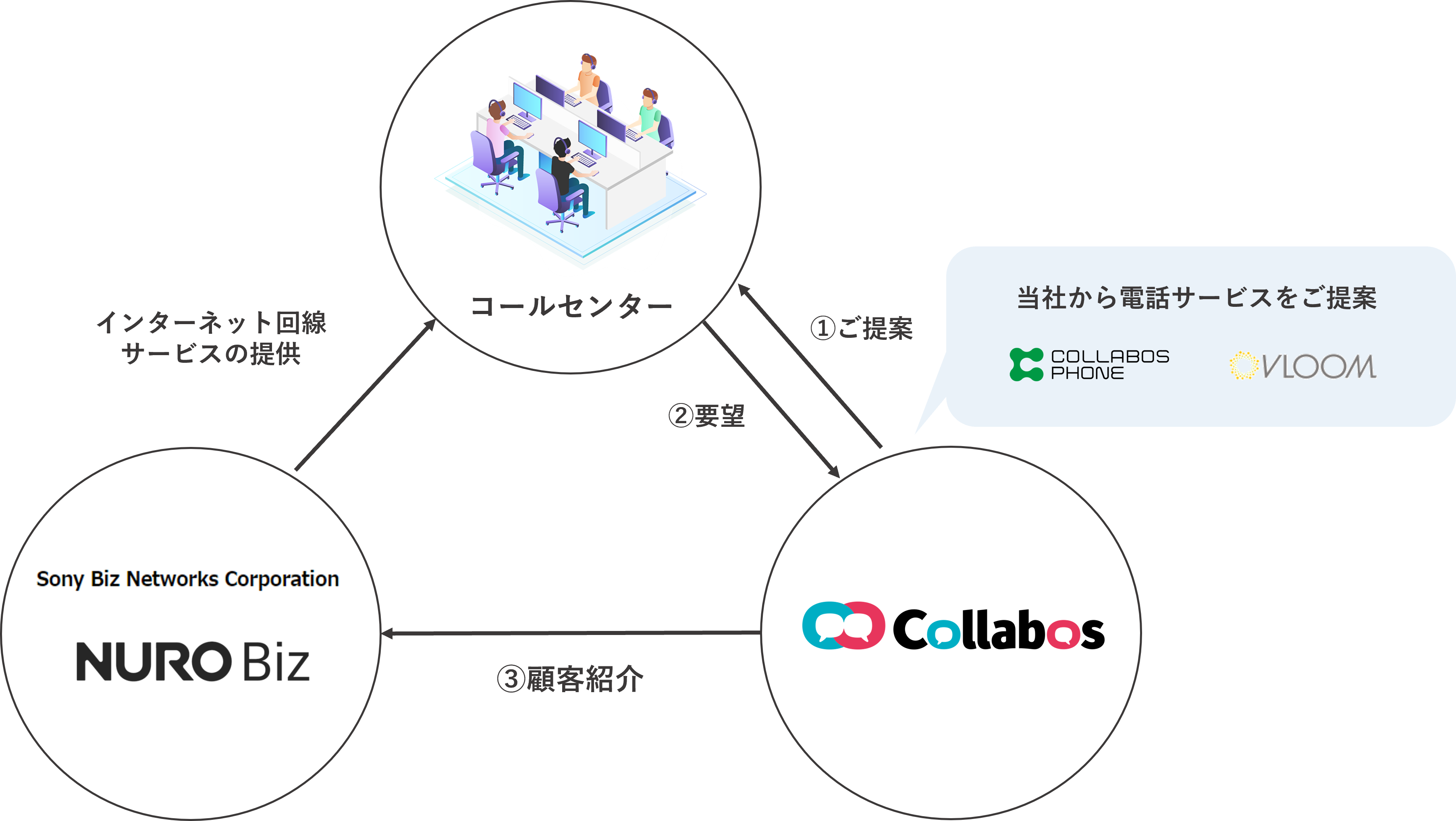 当社は、今回「NURO Biz」の取り扱いを開始することにより、当社が提供する低価格・短納期で導入可能なコールセンターシステム「COLLABOS PHONE」、音声認識や要約機能等を搭載した最新クラウド型AIコールセンターシステム「VLOOM」等とのセット提案が可能となり、システムの提供と同時に必要なインフラ環境をワンストップで提供できると考え、同社との取次業務委託契約の締結に至りました。