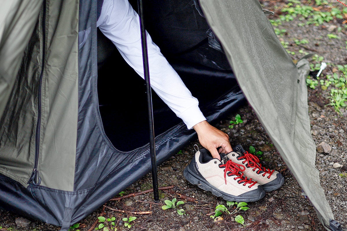 フロントドアパネルを拡張したり、様々な場所に巻き上げ可能なトグルを配置しているため、お好みに応じて設営スタイルを選べます。