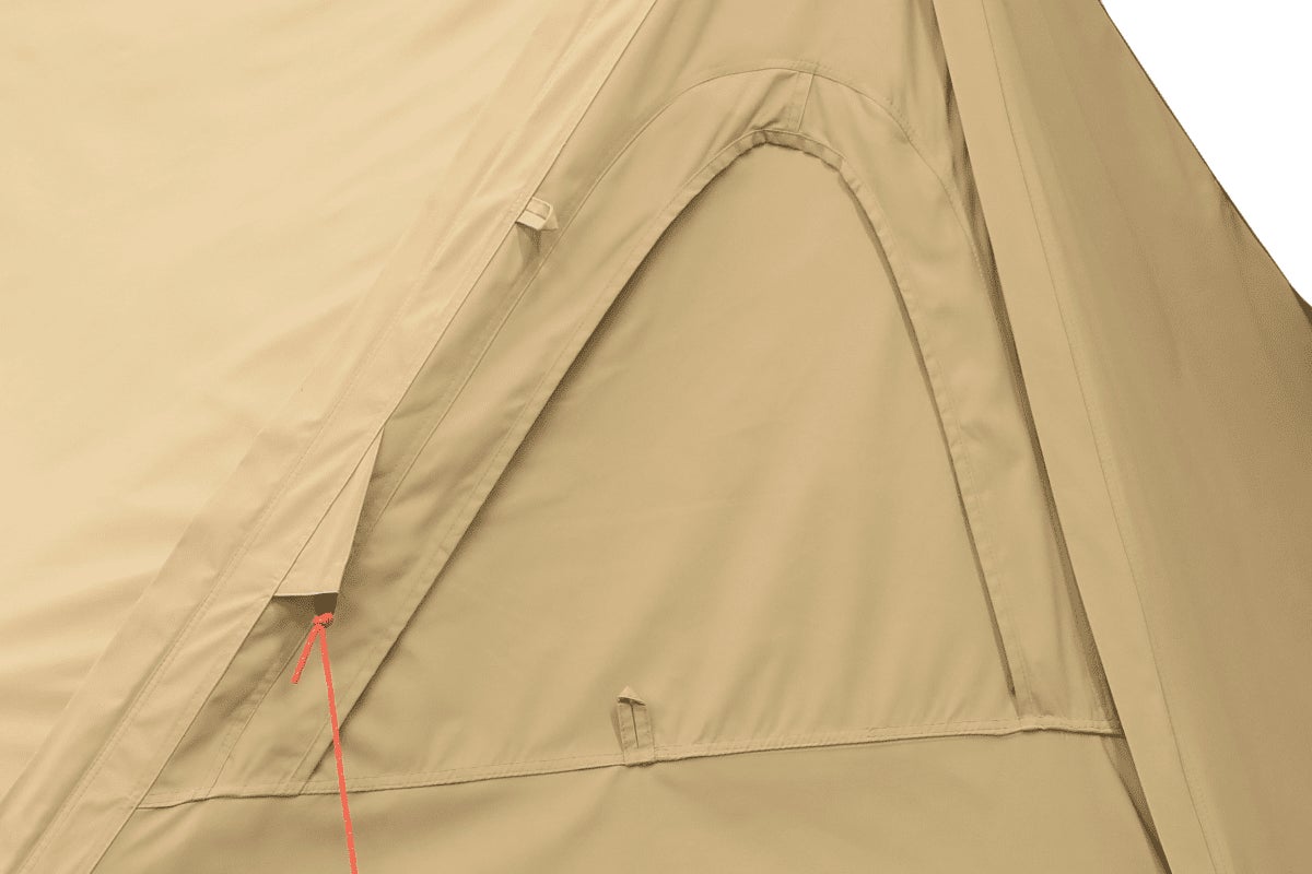 支柱ポール先端をテント外側に貫通させ固定する形状ではなく、支柱ポール差込口がアウターテント内側に内蔵されているため、支柱ポール先端からの水の侵入を大幅に軽減します。