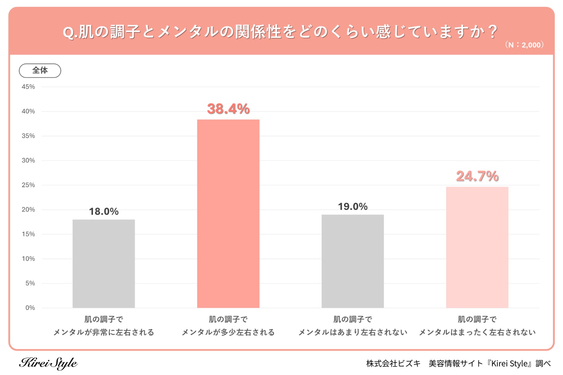 全体で見ると、「肌の調子でメンタルが多少左右される」という方が最も多くなりました。