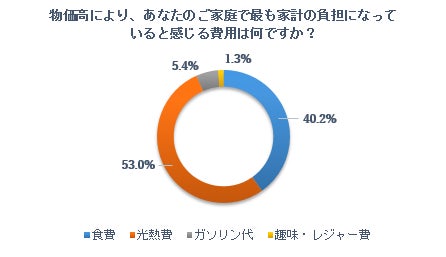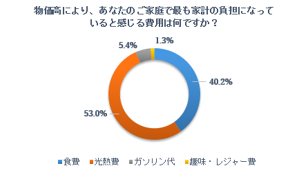 負担に感じる費用としては、「食費」「光熱費」が大多数を占めており、日常生活に欠かせない費用については特に負担を感じていることがうかがえます。