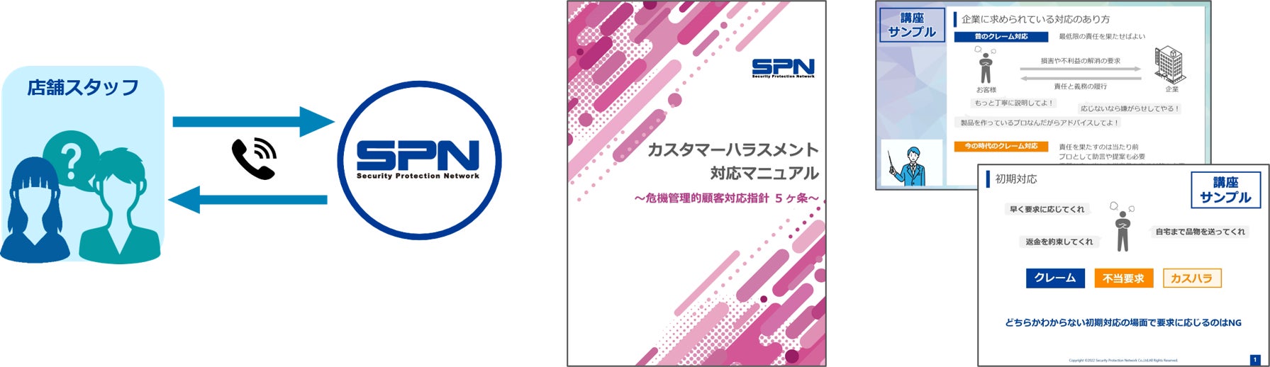 カスハラ対策において重要な①相談窓口 ②マニュアル ③研修をパッケージで提供