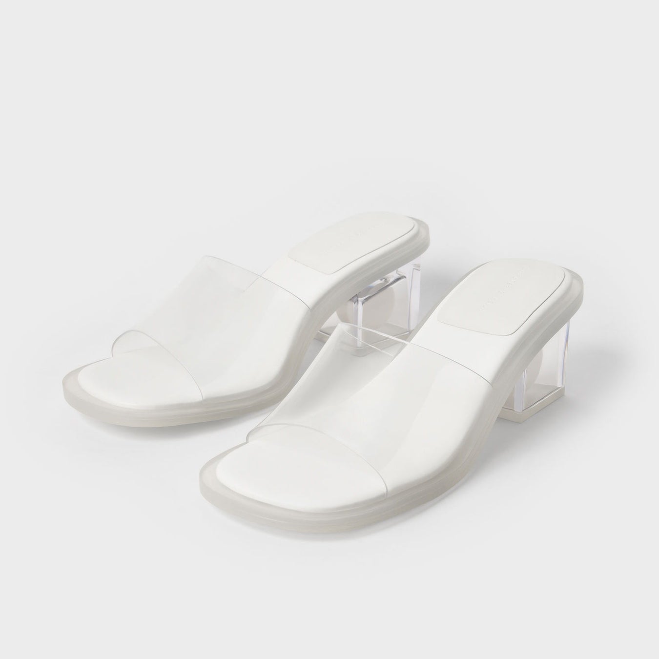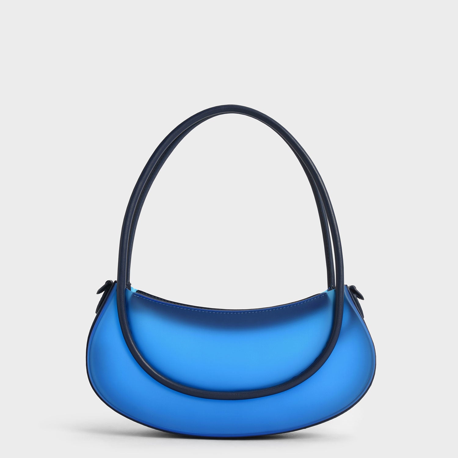 ぽってりとしたトゥのシルエットが新鮮な「マディソン クリアスカルプチャーヒールミュール」(写真上段中央)は、クリアヒールの中にサークルモチーフを閉じ込めた珍しいデザイン。「マディソン シースルーケージドミュール」(写真上段右)は、クリアのケージストラップと裾広がりのダイナミックなヒールで、抜け感とトレンドの両方を演出します。バッグは、丸みを帯びたニュアンスシルエットのアイテムが旬な印象を与えます。