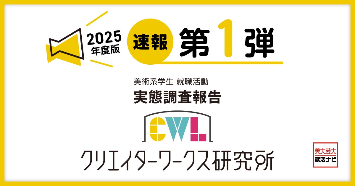 また本年は正式リリースまでの期間中、調査速報として2025年卒美術系学生の就職活動に関するリアルな状況の一部を3回に分けてご紹介いたします。