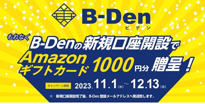 そこで、B-Denでは下記のとおり新規口座開設キャンペーンを実施いたします。