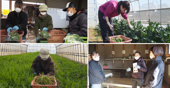 参加学生各3名は、茎ブロッコリーの収穫や種付け、食べチョクの梱包・発送作業などを経験しました。また、ベジLIFE!!の生産者 香取さんと共に「農業をあこがれの職業にするには?」などのテーマでディスカッションを行い、一次産業の課題について考える機会を創出しました。