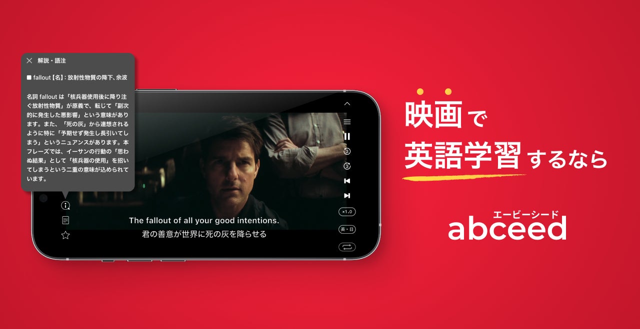 AI英語学習アプリ abceed が「ミッション:インポッシブル/デッドレコニング PART ONE」の公開に合わせTOHOシネマズ日比谷・TOHOシネマズ六本木ヒルズ限定で上映前CMの放映を開始