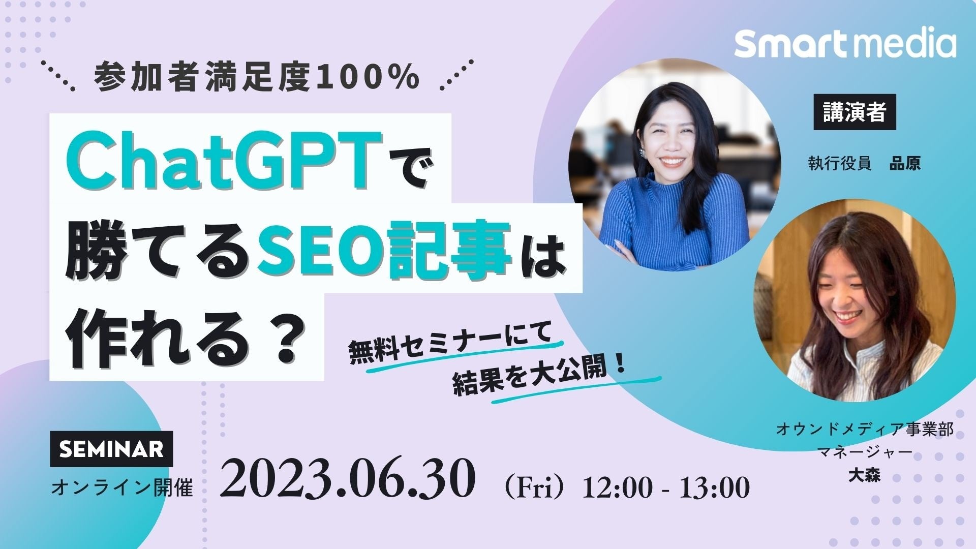 【6/30(金)開催】ご好評につき第2回が決定!「ChatGPTで勝てるSEO記事はつくれる?無料セミナーで結果を大公開!」