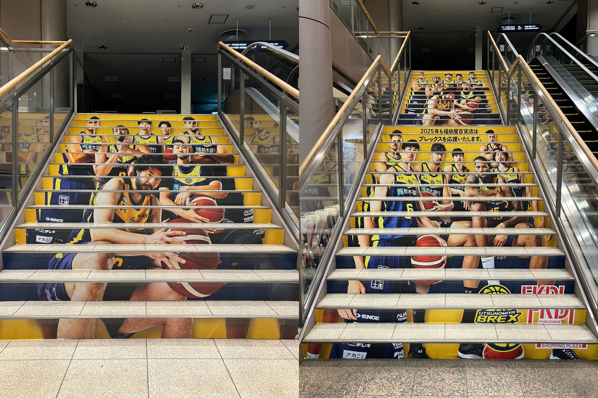 福田屋百貨店ご協力のもと2024年12月28日(土)から2025年2月28日(金)の期間でFKD宇都宮店正面西口側大階段にブレックスのラッピングがスタートしました。