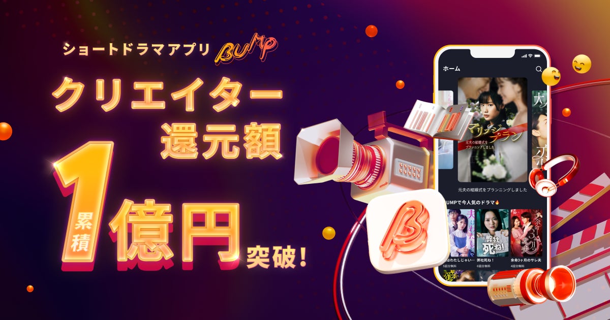 ショートドラマアプリ「BUMP」、クリエイターへの還元額が累計1億円を突破!