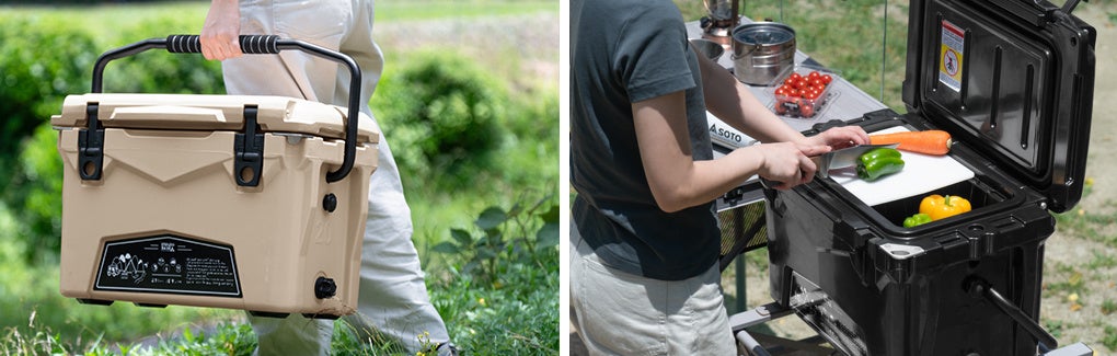 ロトモールド製法によって頑強な構造となった外壁の内部にポリウレタンの断熱材を隅々まで充填させることで、密閉性・断熱効果を持っており、ハードなアウトドアシーンでも高い保冷性能を発揮します。