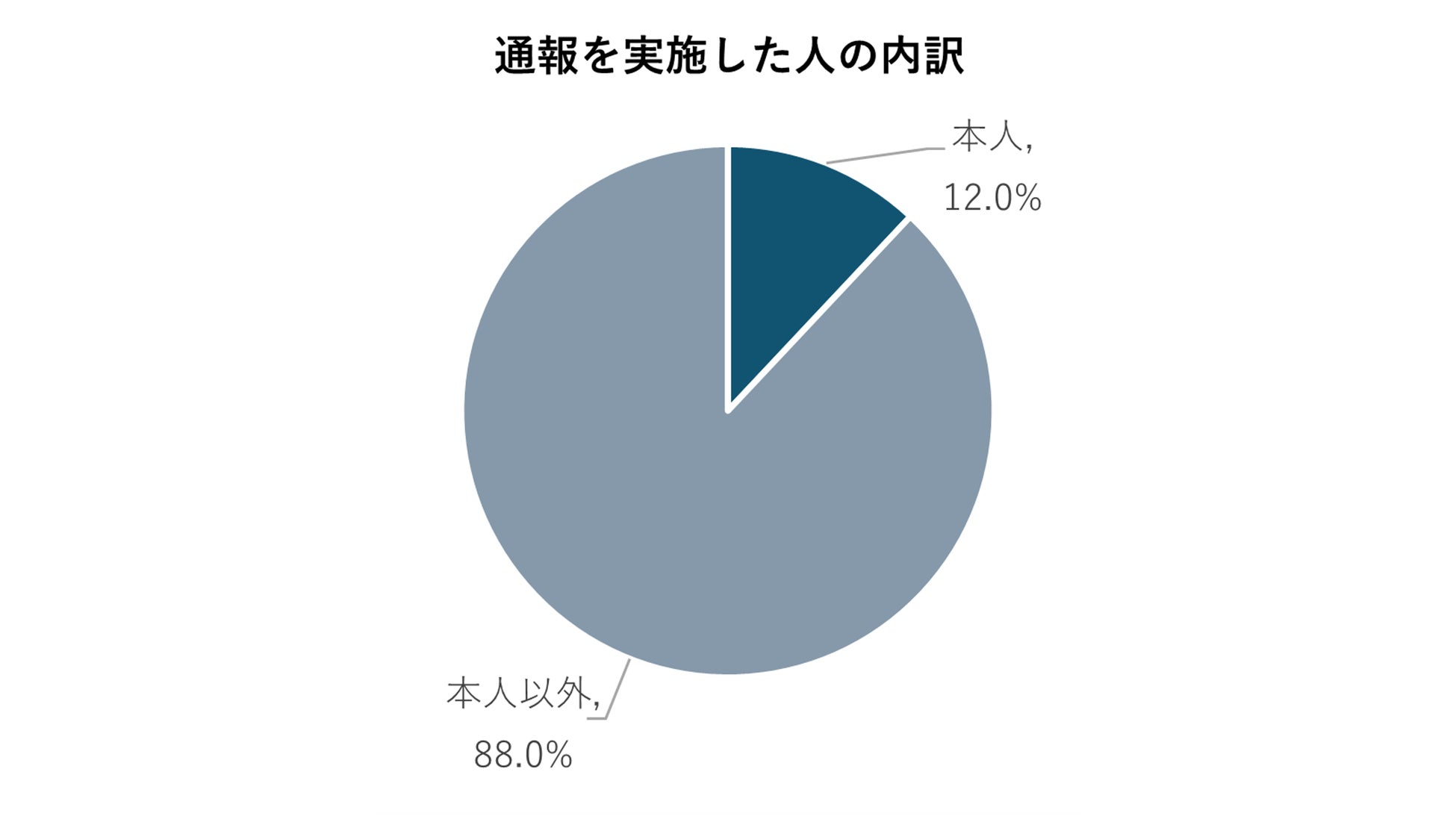 通報を実施した人の内訳は、「本人」が12%、配偶者や親、友人などの「本人以外」が88%という結果でした。
