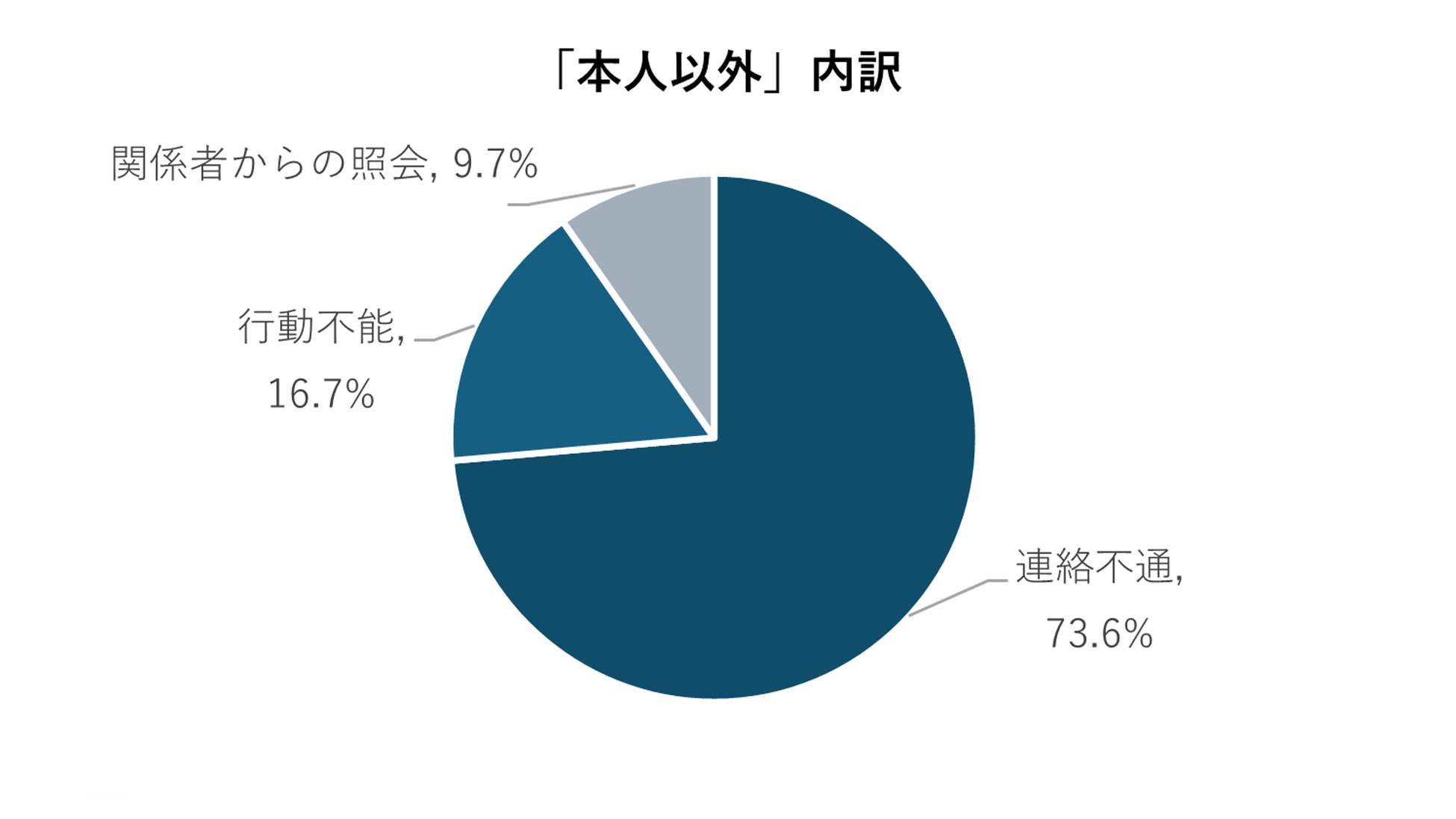 それぞれの内訳をみると「本人」はその全てが行動不能といった「トラブル発生後」の通報ですが、「本人以外」は連絡不通による不安感に起因する通報が7割を超えました。