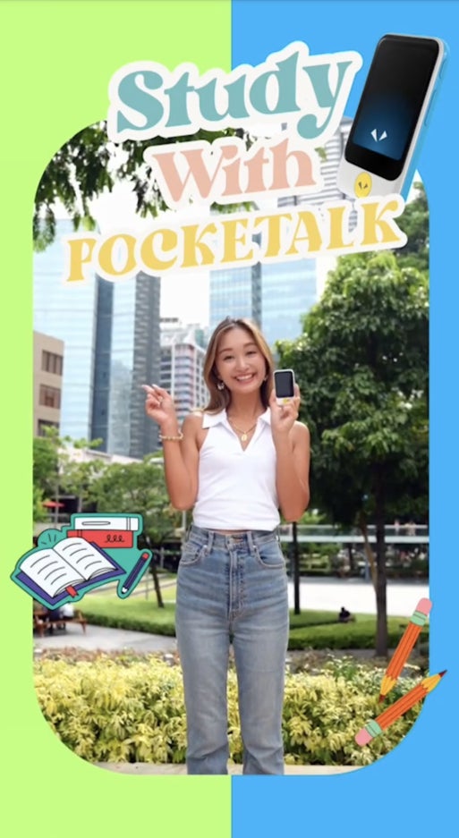完成した今回のムービーは、近藤あやさんが海外留学中のシーンに合わせて『ポケトーク』の活用方法をレクチャー。”もっと気軽に留学に挑戦してもらいたい”という想いをこめた、ポップなデザインとテンポの良さが特徴の動画となっております。