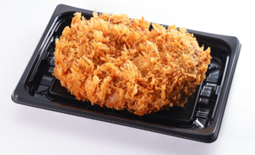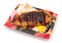 ご当地商品の柳津地⽅のソースかつ丼を再現した⼀品です。味はソー スではなく、醤油ベースの⽢⾟い味付けが特徴です。