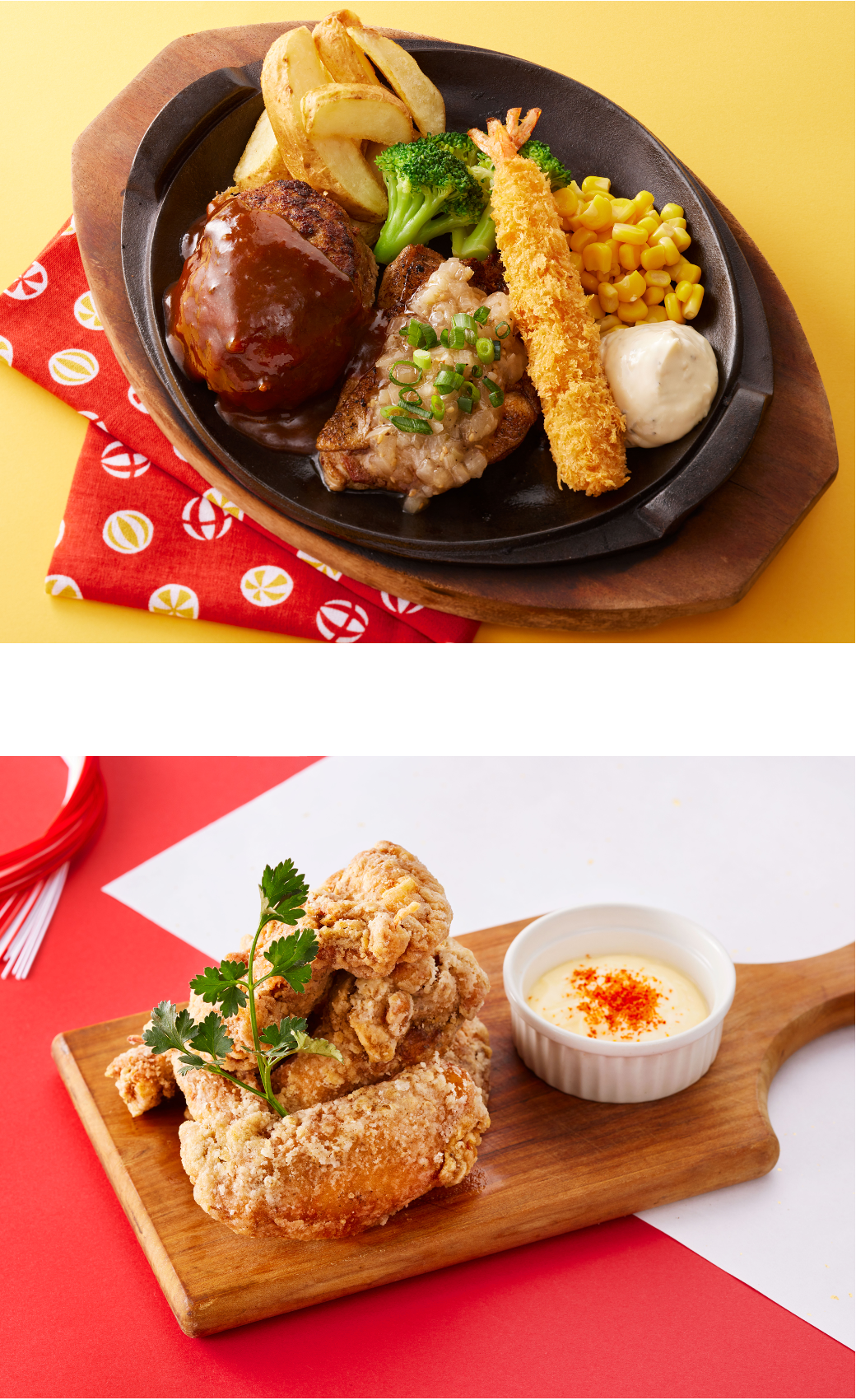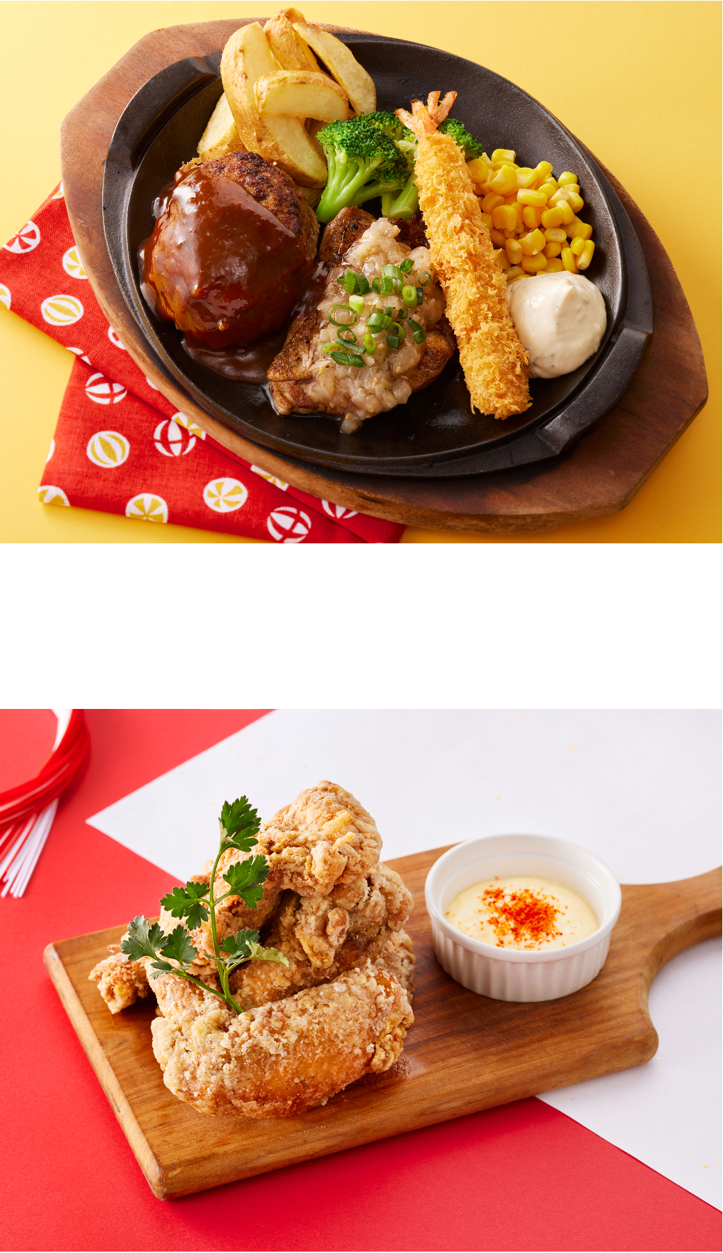 古来より神事として行われてきた相撲は、厄を祓い、福を呼ぶ縁起物としても広く知られています。そのような相撲にちなんだ、土俵をモチーフとしたメニューや「勝負に勝(カツ)」とかけたカツのメニューなど、バラエティ豊富に揃えています。食べて福を呼び込む縁起の良いメニューに、心もおなかも満たされること間違いなしです。