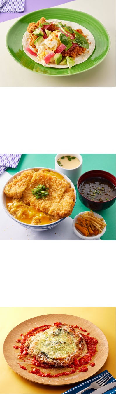 大判の鶏カツレツに生ハムとチーズを重ねてさらに焼き上げた、イタリア伝統料理「コトレッタアッラボロネーゼ」をアレンジしたメニュー。間に大葉を挟み込み、日本らしいアクセントを加えました。