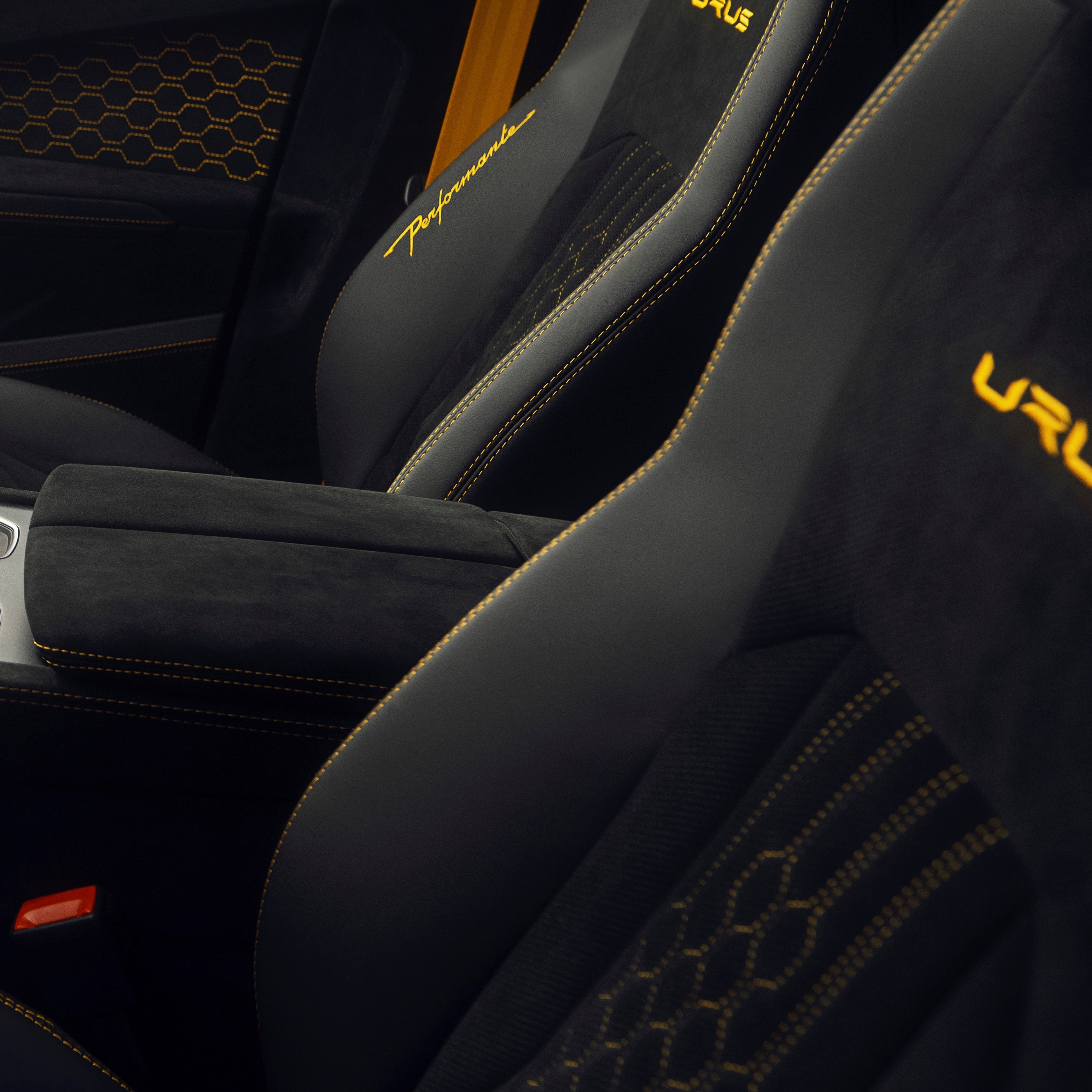 同じくアルカンターラを使用したヘッドレストには、中央にランボルギーニのロゴが刺繍され、シート中央上部にはURUSの文字が縫い込まれています。