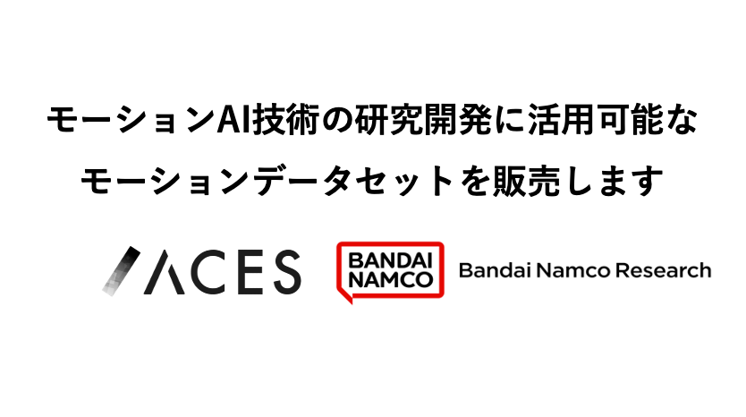 そこで、モーションAI技術の研究開発の発展に寄与すべく、バンダイナムコ研究所とACESの共同研究開発で収集したモーションデータセットを研究開発に取り組む企業や研究所の研究員の方向けに販売いたします。