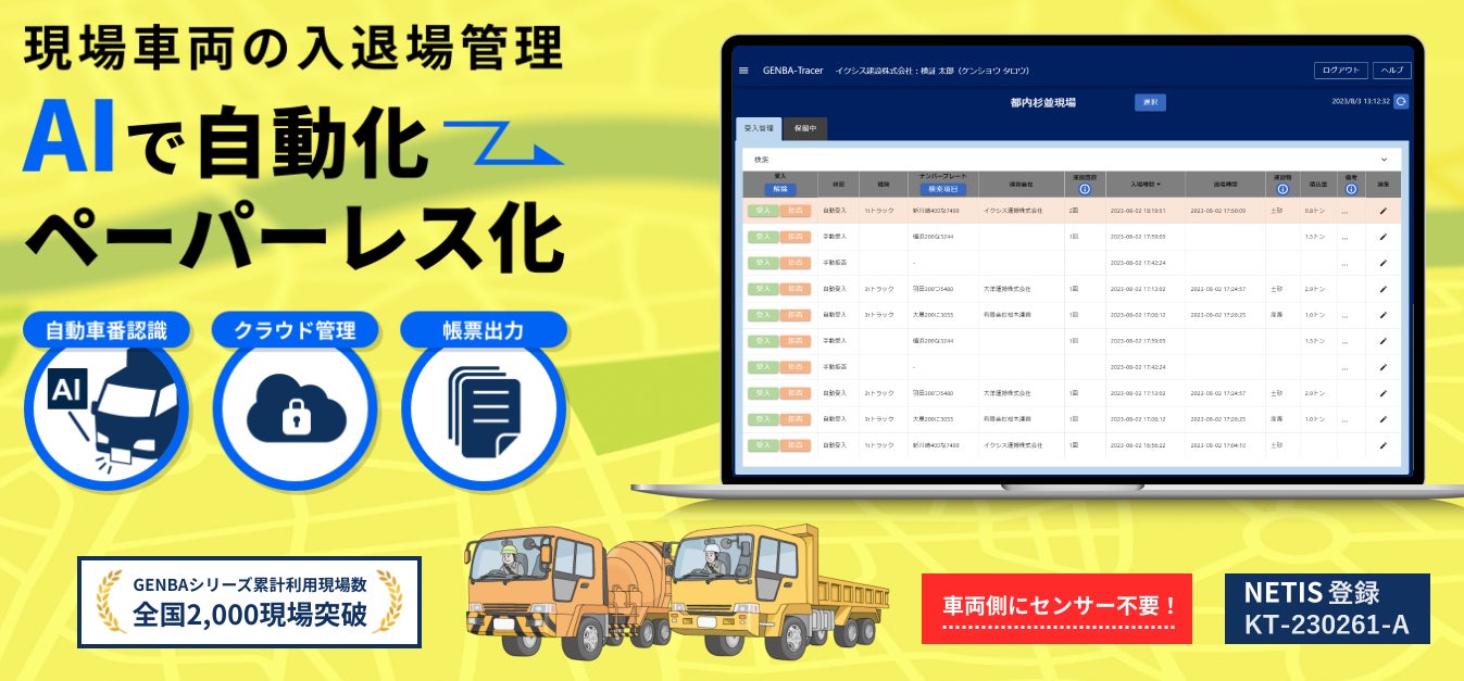 【関連】AIクラウド車両入退場管理システム「GENBA-Tracer」: