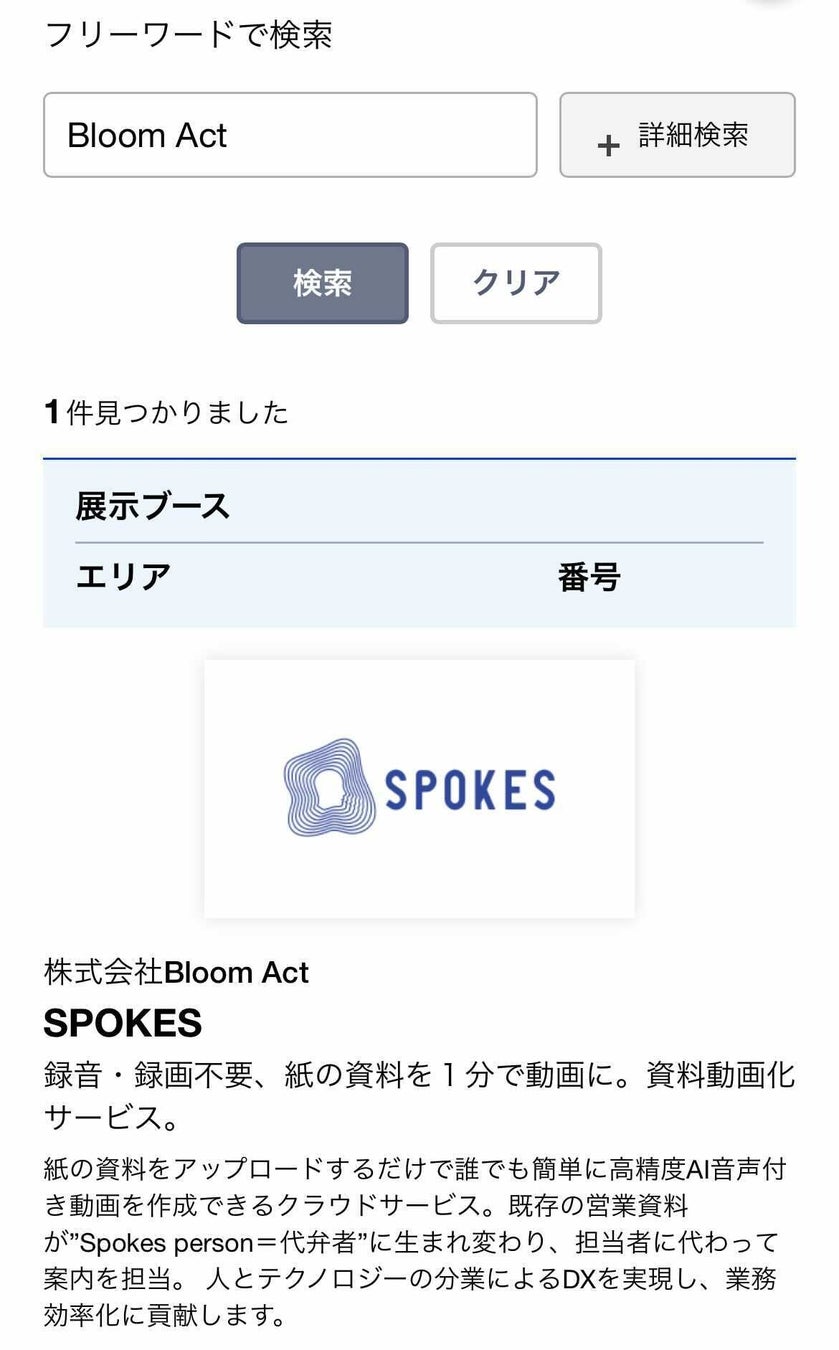 <2023/3/30 情報更新> 4/27(木)、28(金)Sansan主催「BIS 2023 -未来をつくる IT総合展-」にBloomActが出展。資料動画化サービス「SPOKES」のブース設置。