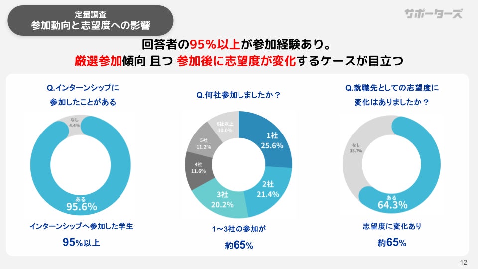 加えて、インターンシップへの参加をきっかけに、就職先としての志望度に影響したと回答した学生は、約65%にのぼりました。