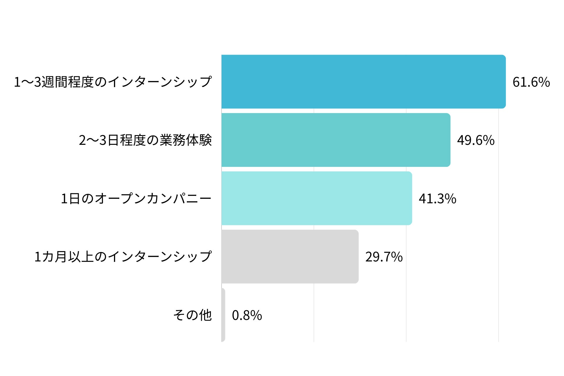 産学の合意により、2025年卒学生から、一定の条件下において採用直結型インターンシップを実施することが認められました。その結果として、近年は長期間の実践的なインターンシップが目立つ傾向が続いています。