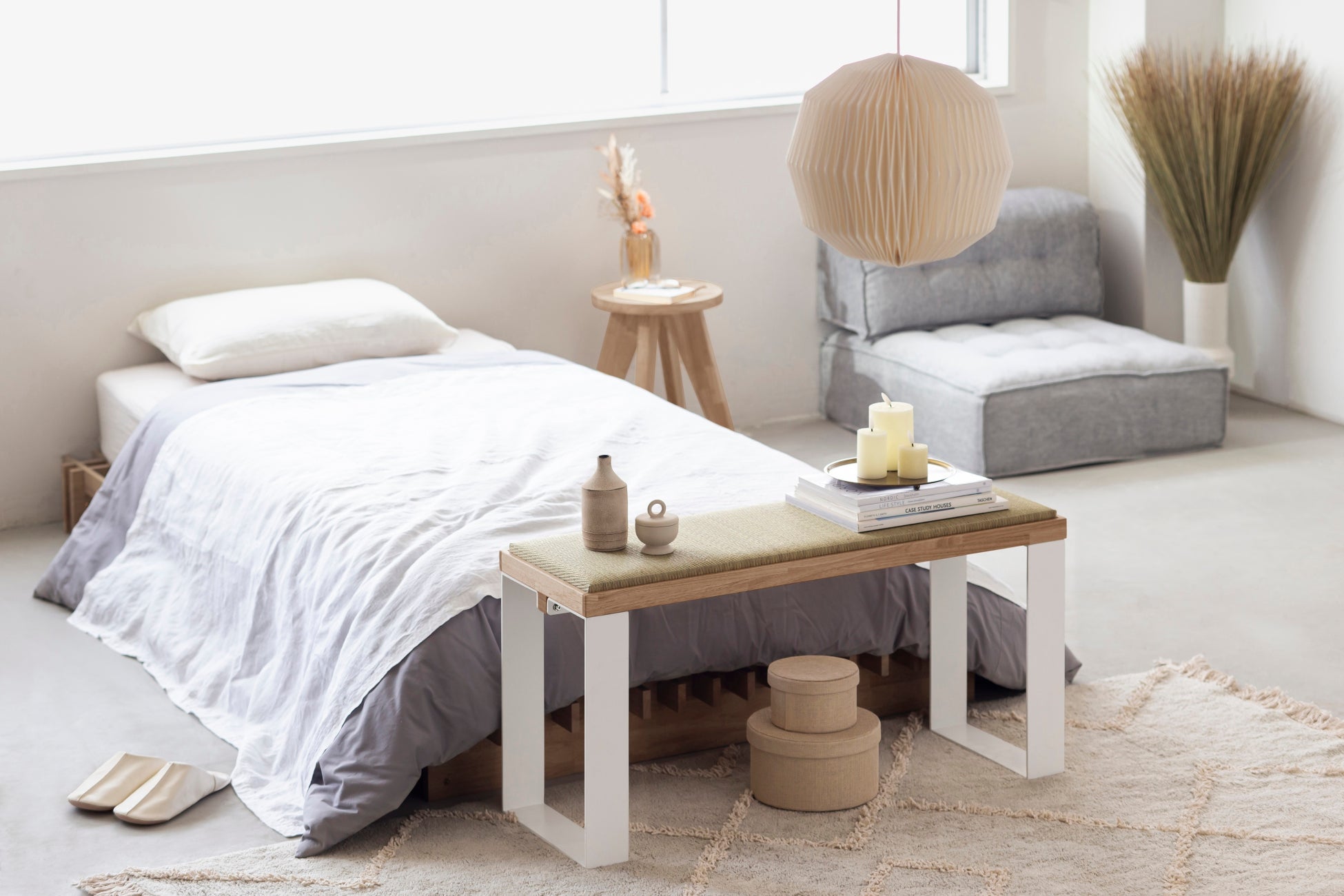 THE TATAMI BENCHは当社が提案する5つのインテリアスタイルの中で、ジャパンディスタイルの「Wabika」を象徴するアイテムです。