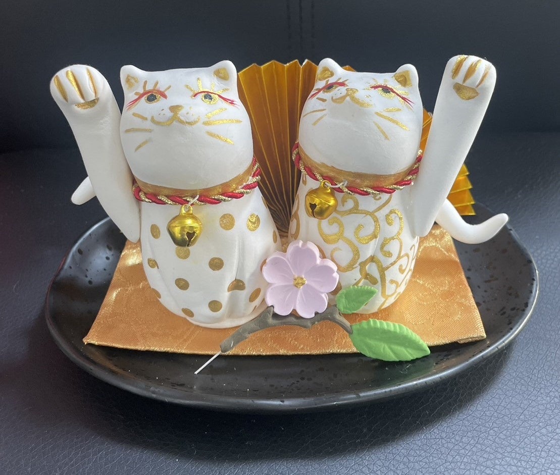 き猫。2体の招き猫の手をDECOクレイクラフト粘土でお作りいただき、お好き