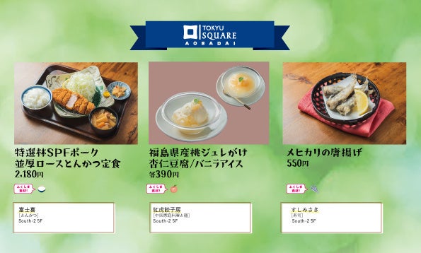当社は、福島県産の食材の消費促進を促すことを目的に、運営する3つのSC「二子玉川ライズ・ショッピングセンター」「たまプラーザ テラス」「青葉台東急スクエア」において、2022年より「夏のおいしいふくしまフェア」を開催してきました。今年は「あざみ野ガーデンズ」を加えた4つのSCで、各施設の飲食店舗が考案した福島県産の食材を使用したオリジナルメニューを楽しむことができます。