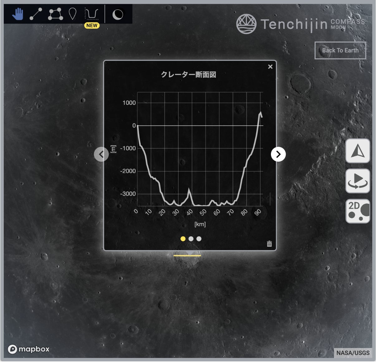 JAXA認定の宇宙ベンチャー 株式会社天地人(東京都港区 代表取締役 櫻庭康人)は、宇宙ビッグデータを活用した、月の分析が可能な土地評価エンジン『天地人コンパス MOON 』に「クレーター断面図作成機能」を追加しました。天地人コンパス MOON は、無料、かつ、アカウント登録なしでご使用いただけます。