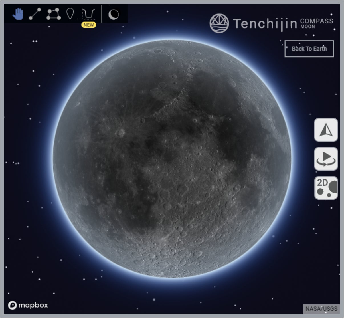 天地人コンパス MOON は、地球観測衛星のビッグデータをはじめとする様々なデータをもとに、解析、可視化、データ提供を総合的に行う土地評価サービス「天地人コンパス」の月版です。