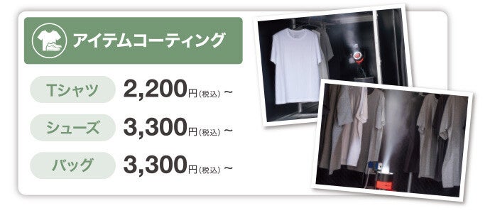 アパレルやシューズ、スーツやユニフォームなど、さまざまな衣類や日用品に対してナノメタックスコーティングを施しリラックス化させることが可能になりました。
