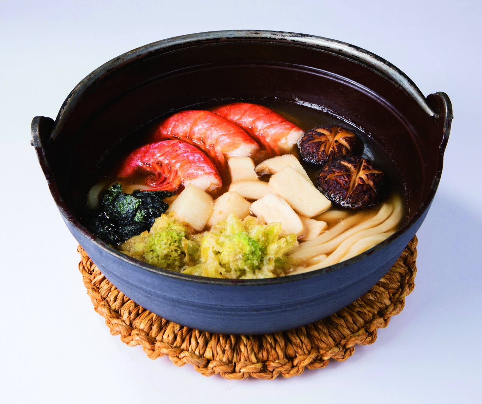 作中に出てくる「大サソリ」をぷりぷり食感の赤海老で再現しました。あさり出汁の効いた風味豊かな逸品をお楽しみください。